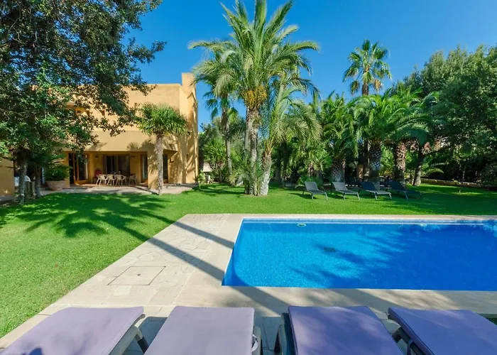 Villa Son Floriana med 3 sovrum, som ligger 400 meter från Platja de na Marins, har utomhuspool och trädgård. Villan med 3 badrum, som ligger några minuters bilresa från Iglesia Nueva, har en terrass med utsikt över trädgården.